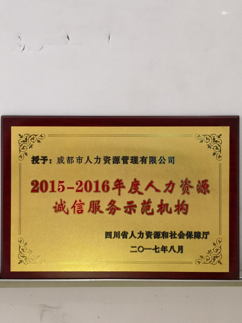 2015-2016年度人力資源誠(chéng)信服務(wù)示范機(jī)構(gòu)